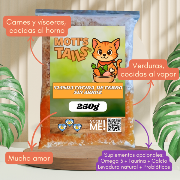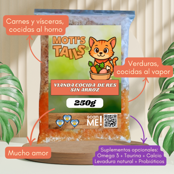 En Moti’s Tails preparamos comida natural, real, casera, para perros y gatos. Nuestras viandas están hechas con ingredientes de primera calidad, aptos para consumo humano y con mucho amor.
